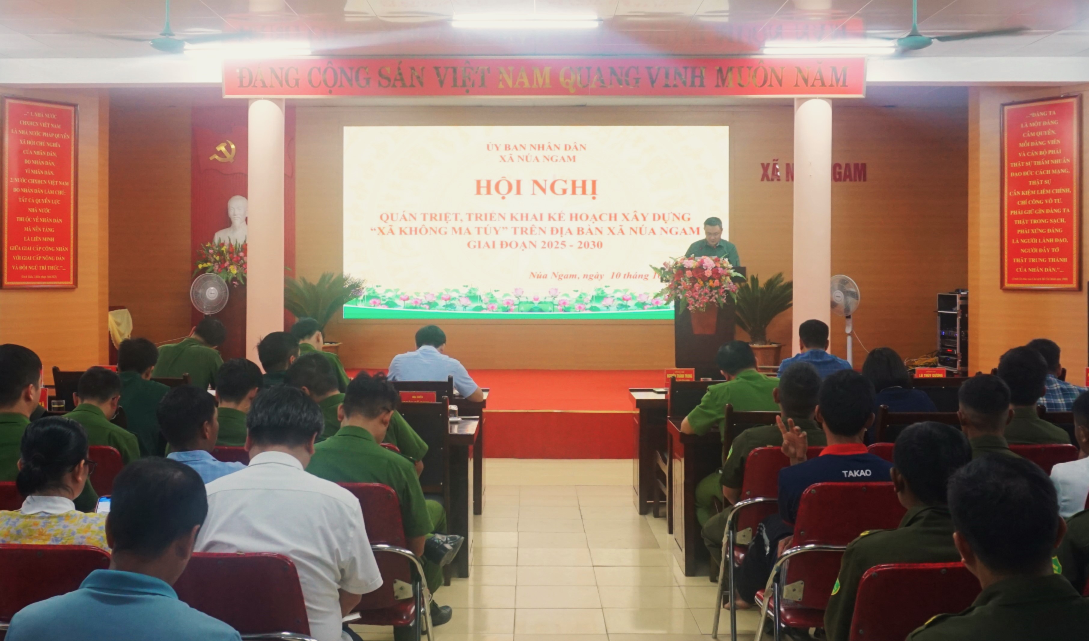 TTDVTH - Chiều 10/10, Ủy ban nhân dân (UBND) xã Núa Ngam đã tổ chức Hội nghị quán triệt, triển khai kế hoạch xây dựng “xã không ma túy” trên địa bàn xã, giai đoạn 2025-2030.