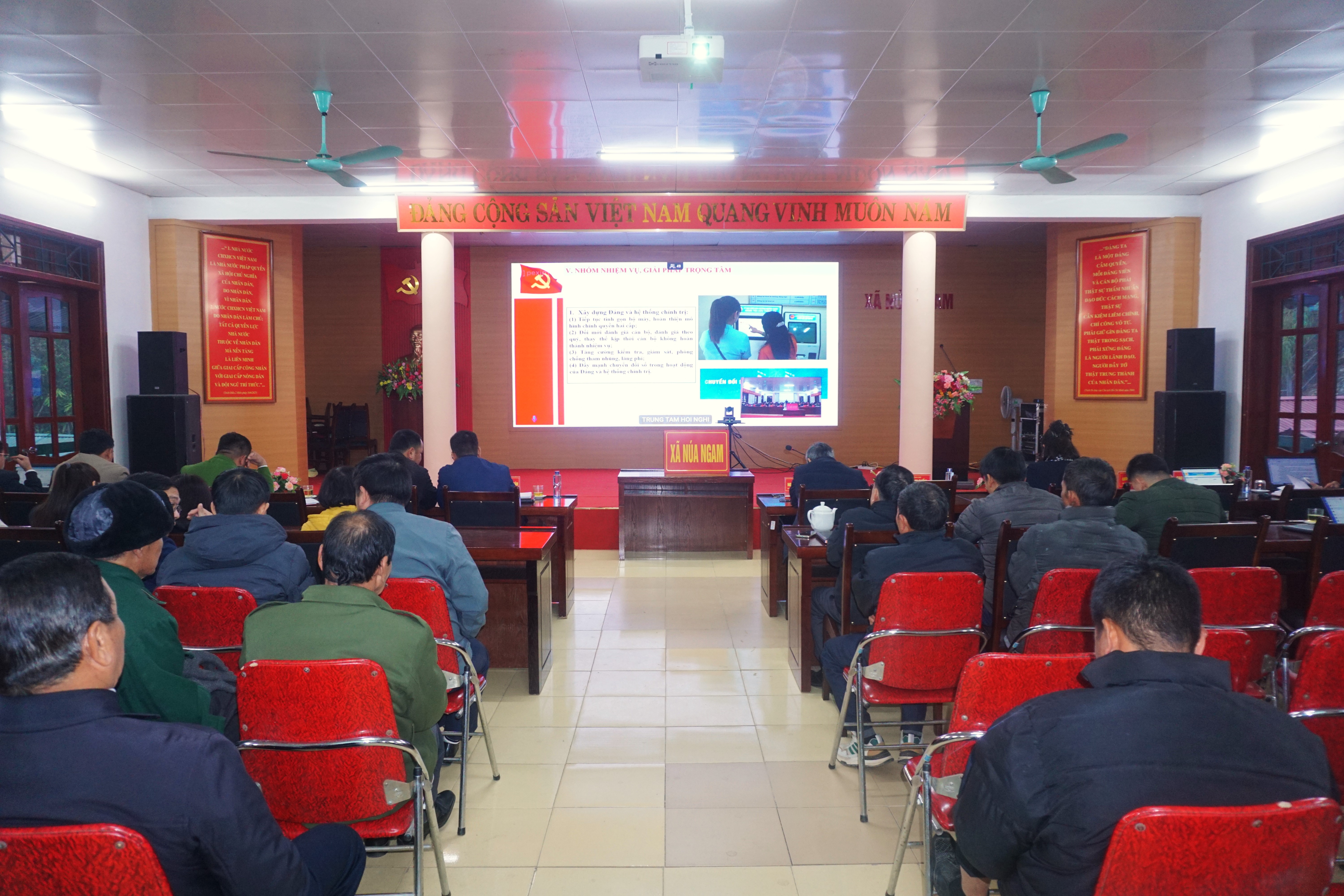 TTDVTH - Sáng ngày 13/01/2026, Đảng ủy xã Núa Ngam đã tổ chức Hội nghị học tập, quán triệt, tuyên truyền và triển khai thực hiện các Nghị quyết chuyên đề của Tỉnh ủy Điện Biên, nhiệm kỳ 2025 - 2030 theo hình thức trực tuyến từ điểm cầu tỉnh Điện Biên đến điểm cầu xã.