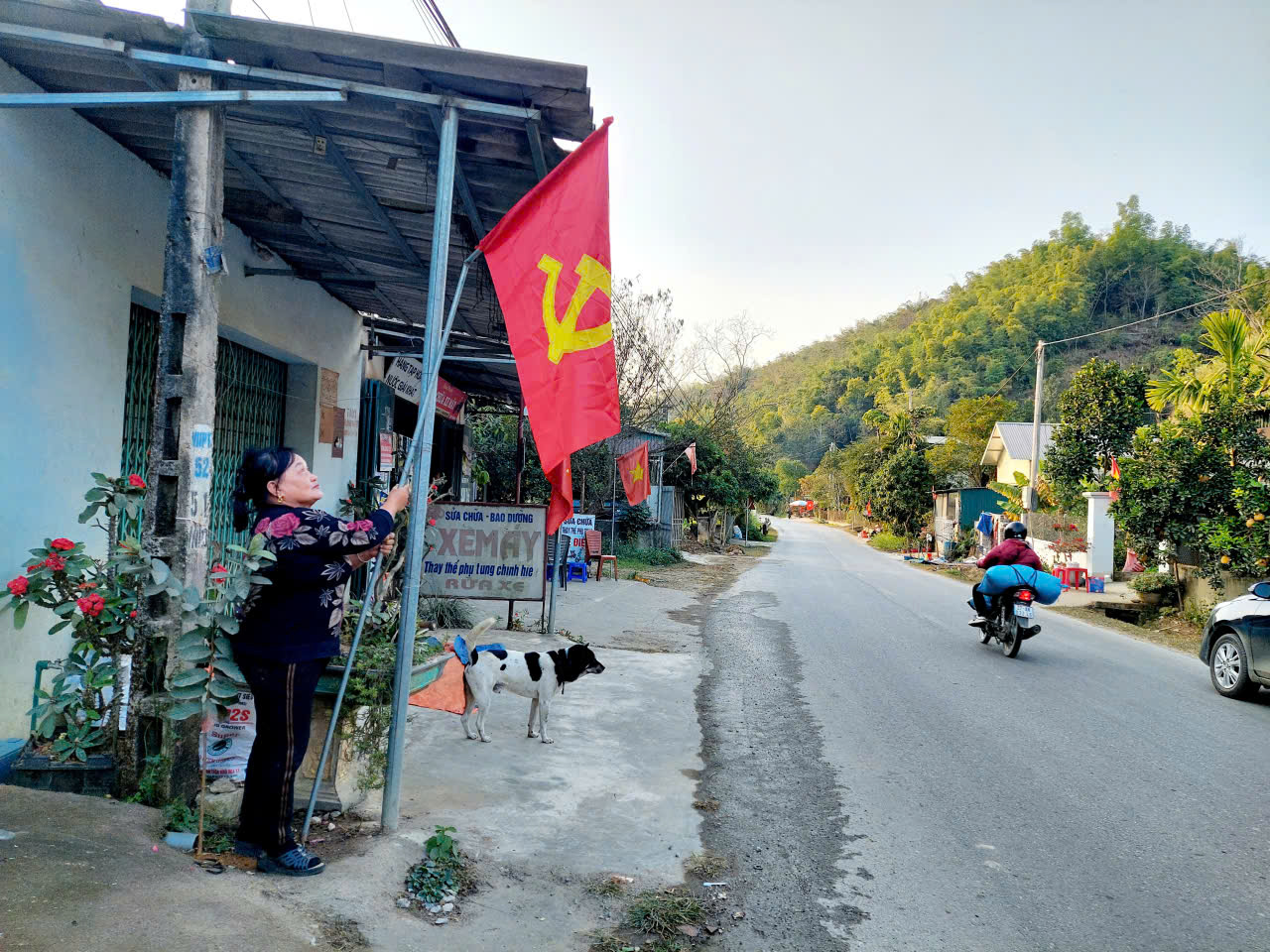 TTDVTH - Thực hiện kế hoạch tuyên truyền, cổ động chào mừng Đại hội đại biểu toàn quốc lần thứ XIV của Đảng, những ngày qua, xã Núa Ngam đã đồng loạt triển khai cắm cờ hồng kỳ, lắp đặt biển tam giác tuyên truyền tại các trục đường chính trên địa bàn xã.